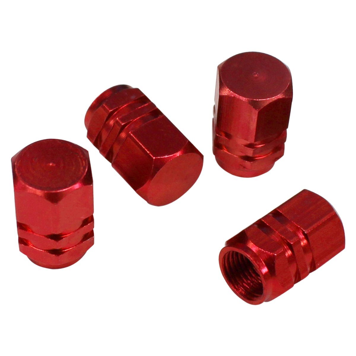 - 【送料220円】[赤 レッド ] 汎用 アルミ製 エアバルブキャップ 4個 セット アルミホイール ホイール エアー バルブ キャップ 車 自動車