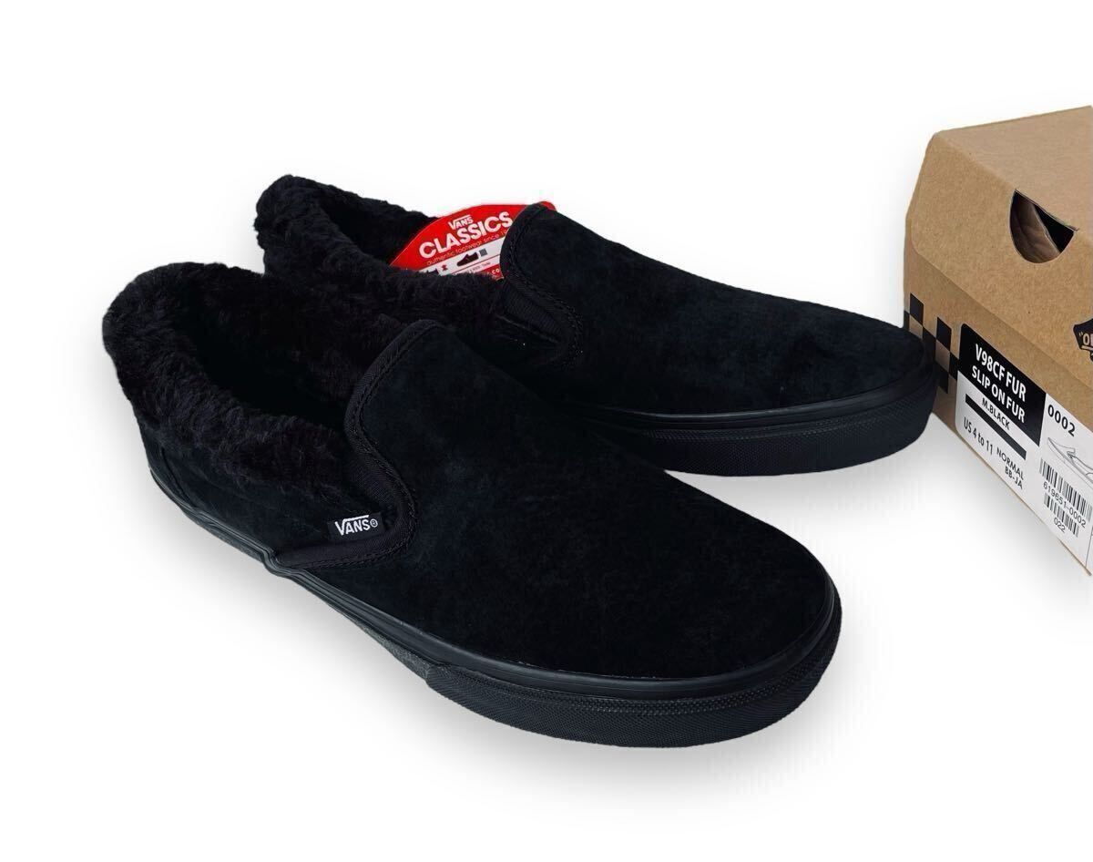 - 新品!! 名作!! VANS SLIP ON FUR BLACK バンズ スリッポン ブラック スエード ファー 黒 × 黒 us 8.5 / 26.5 ㎝ 天然皮革 箱付き