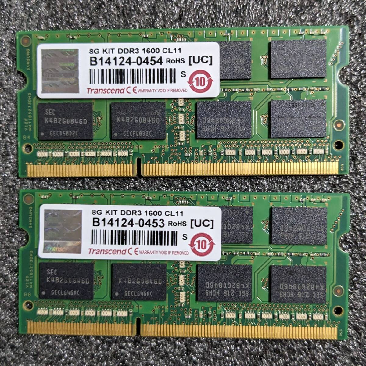 - 【中古】DDR3 SODIMM 8GB(4GB2枚組) Transcend(中身Samsung M471B5273DH0-CK0) [DDR3-1600 PC3-12800 1.5V]