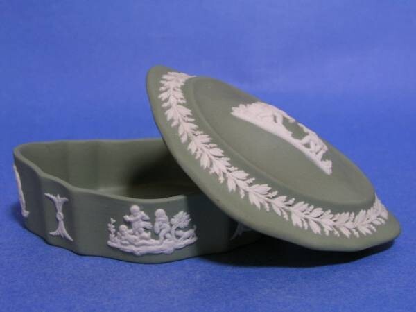 - ◎ウェッジウッド グリーンジャスパー 可愛い変形蓋物◎ya