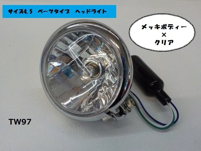 - TW★☆タイワン製 高品質 サイズ4.5 ベーツタイプ ヘッドライト メッキボディー×クリア アメリカンバイク(27)