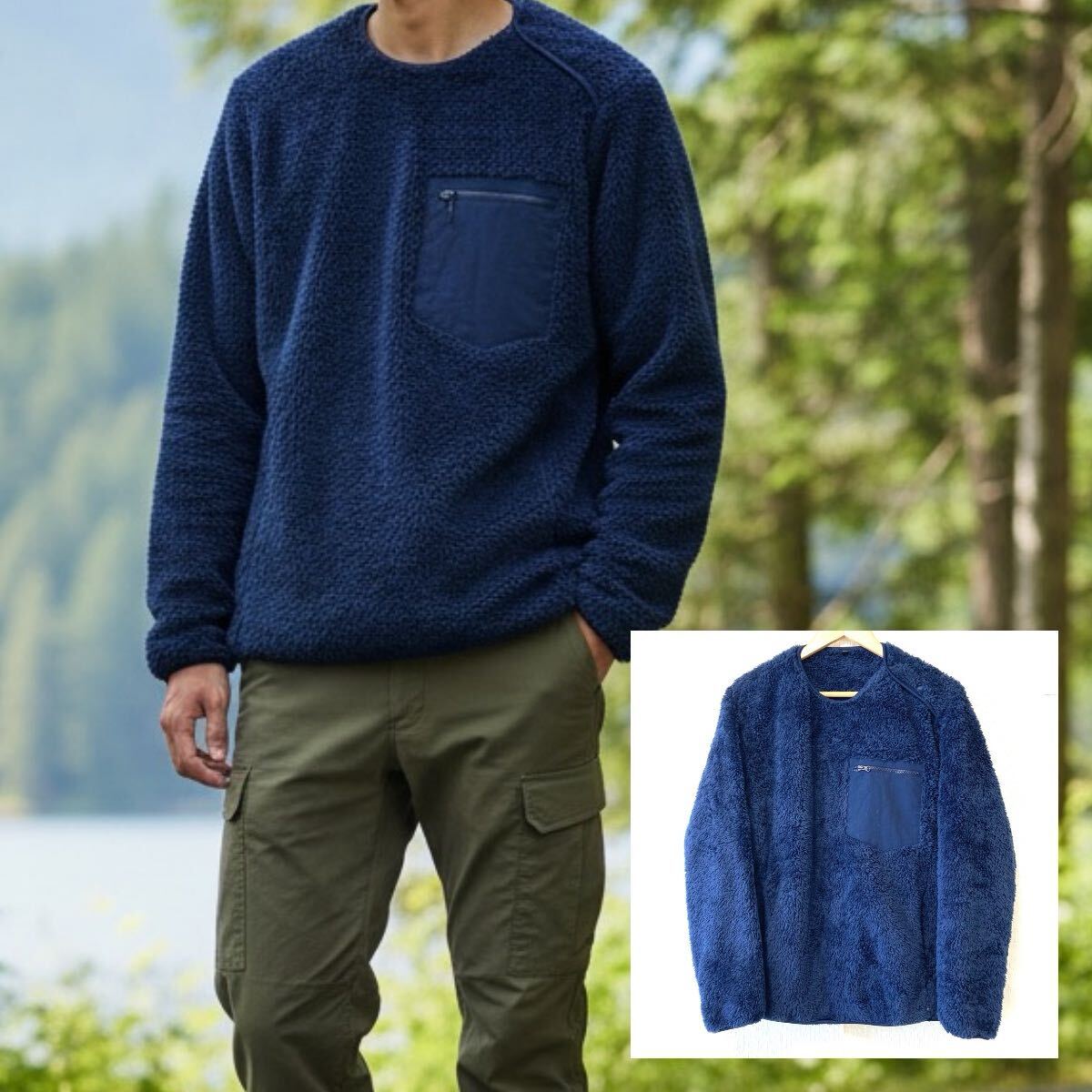 > ストレスフリーな着心地!【UNIQLO】ユニクロ ファーリー フリース プルオーバー ふわふわ もこもこ アウトドア ボア ネイビー M/Y38129UU