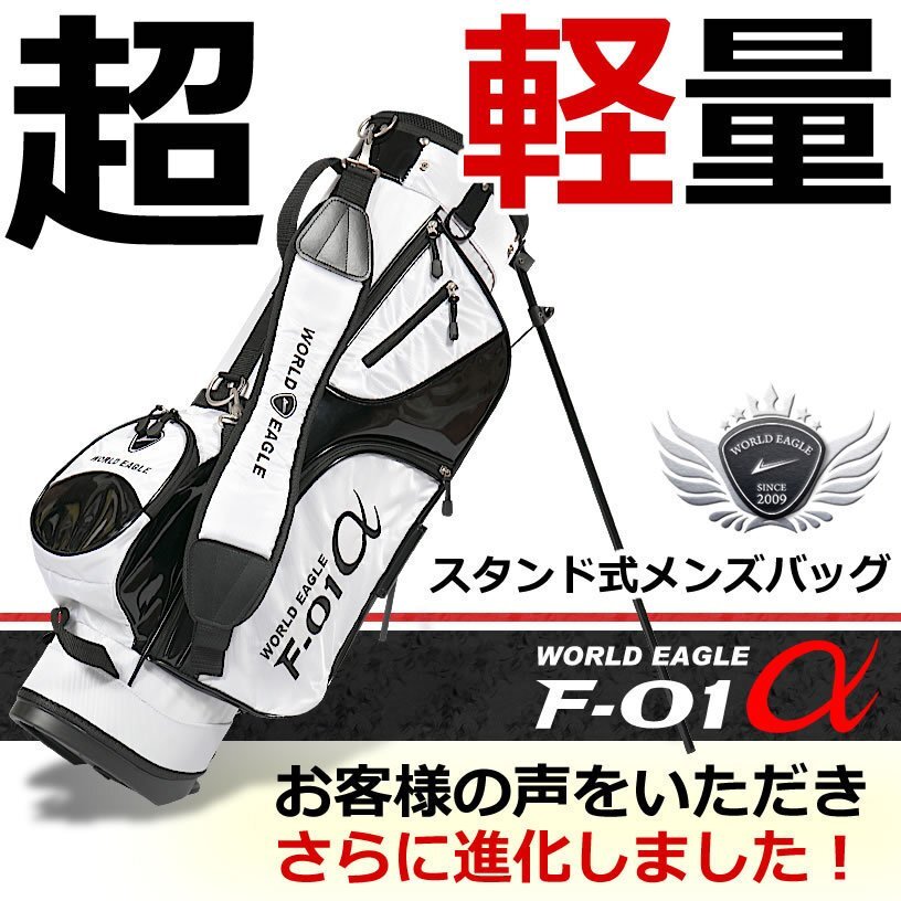 - ワールドイーグルF-01αメンズスタンド付き ゴルフバッグ ホワイト[33218]