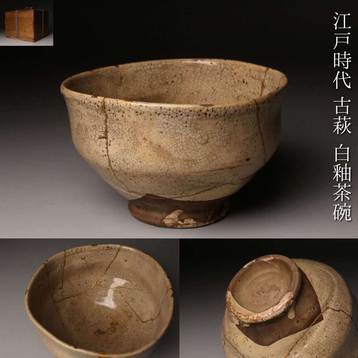 - 【LIG】江戸時代 古萩 白釉茶碗 時代箱 金継 山口古陶 茶器 時代茶道具 伝世品 茶家収蔵品[.QQ]25.11