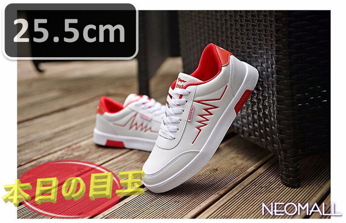 > 格安 ☆ 激安 メンズ スニーカー 25.5cm レッド 靴 シューズ 防滑 ランニング ジョギング 通勤 通学 ハイキング 【831】