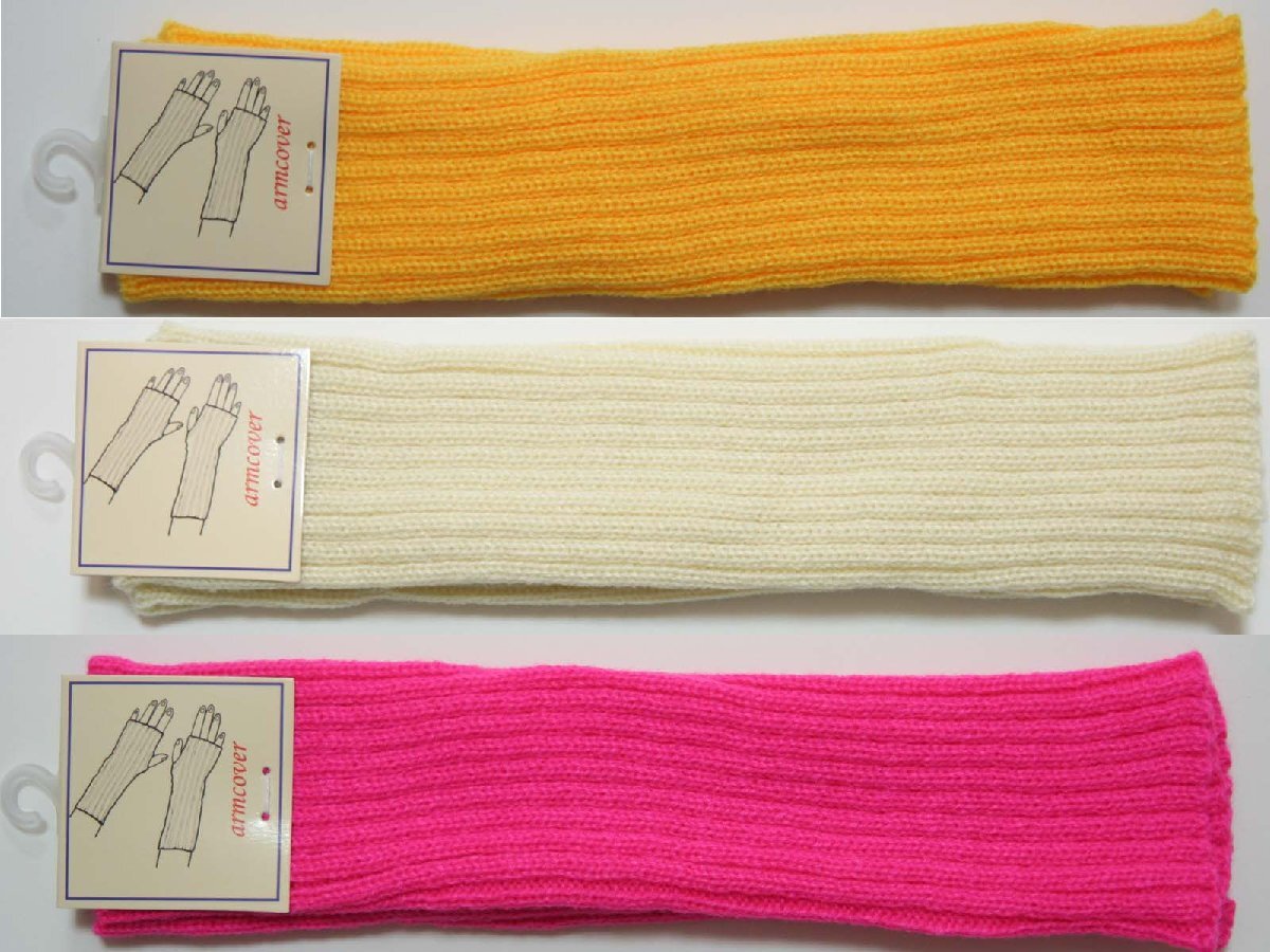> 送料無料◆3色組◆アームウォーマー◆親指穴付き◆無地◆リブ編み◆あったかアームカバー(イエロー&クリームベージュ&ショッキングピンク