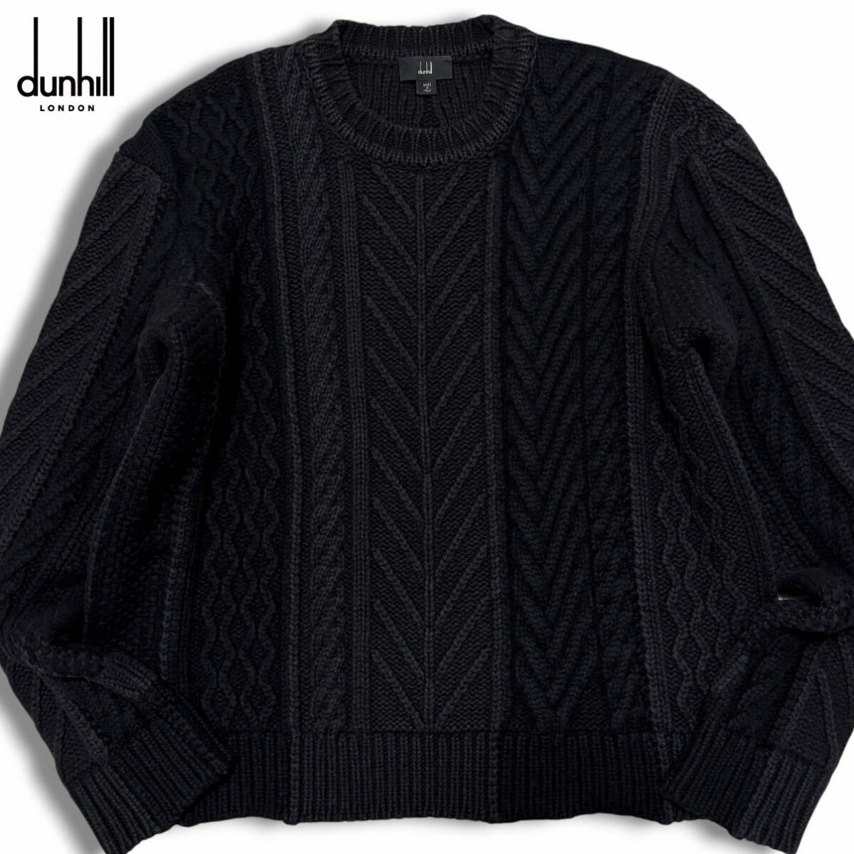 > 極美品/Lサイズ●最高級 定価25万 dunhill ダンヒル 現行モデル 立体編み ケーブルニット 厚手 アランニット風 セーター 伊製 ブラック 黒