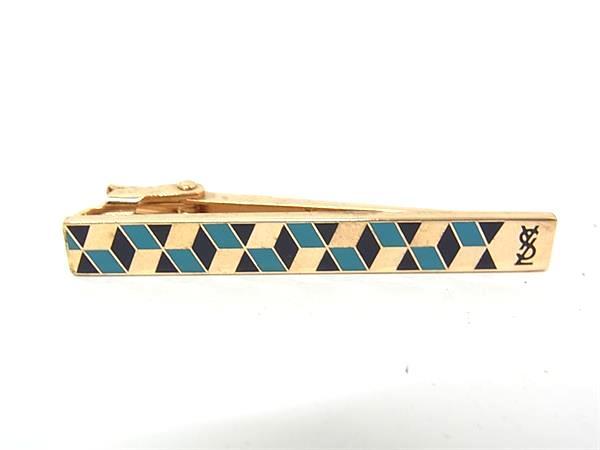 - YVESSAINTLAURENT イヴサンローラン ヴィンテージ ネクタイピン タイクリップ アクセサリー シャンパンゴールド系×ブルー系 DK7282