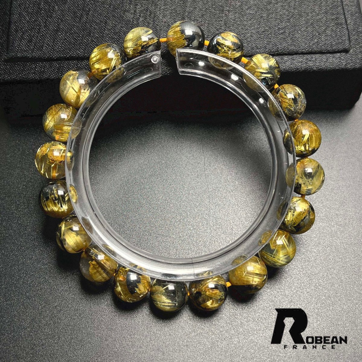 > 逸品 EU製 定価55万円★ROBEAN・太陽花タイチンルチル★黄金針水晶 金運 開運 ゴールド ブレスレット パワーストーン 9.4-9.8mm K0520707
