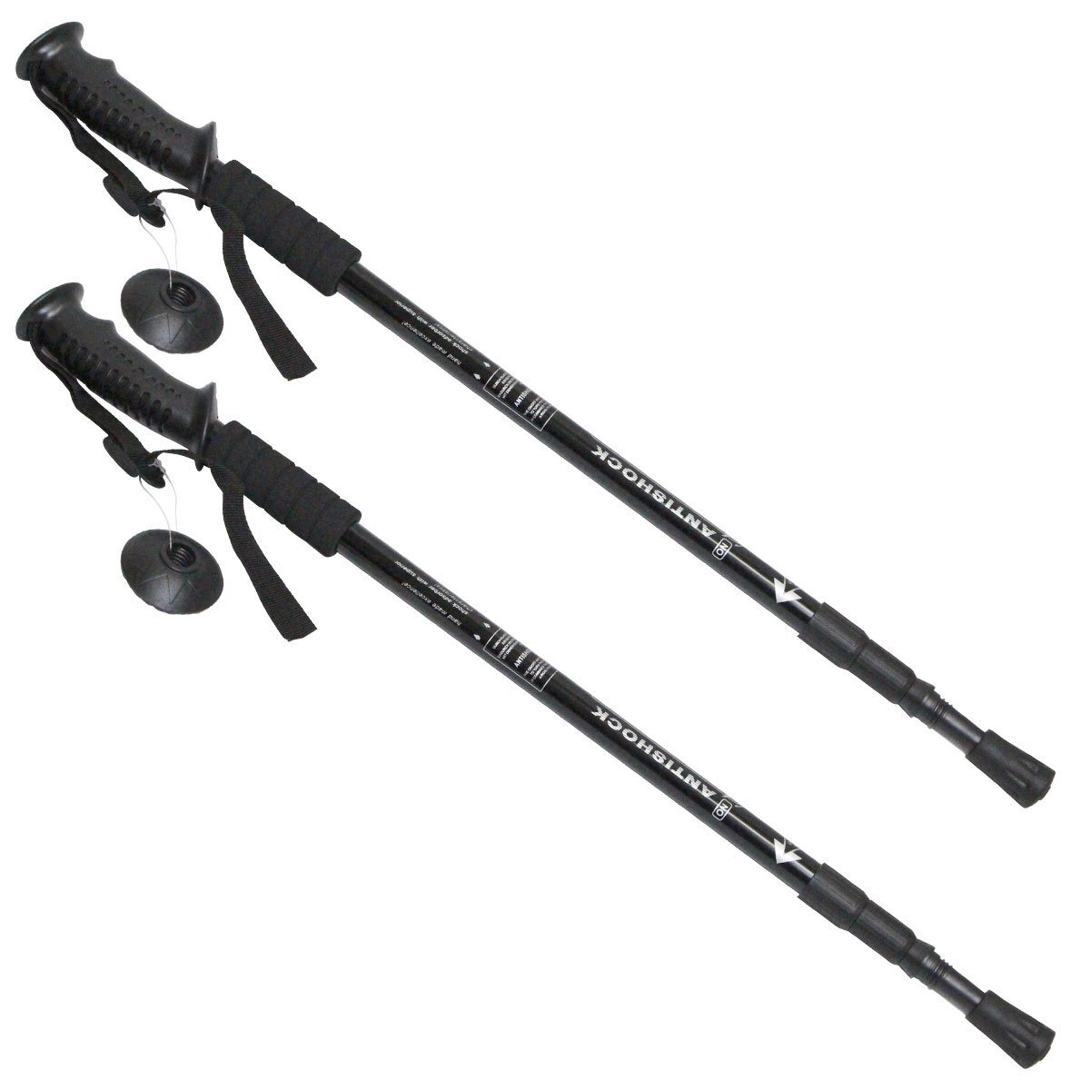 - 2本セット トレッキングポール ブラック/黒 ウォーキングポール 登山 雪山 杖 トレッキングステッキ 棒 補助 軽量 アルミ製