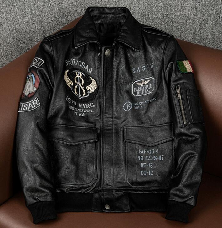 - 新入荷ライダースジャケット レザージャケット 牛革 バイクジャケット 刺繍本革革ジャン メンズフライトジャケット S~5XL 黒 選択/Lサイズ