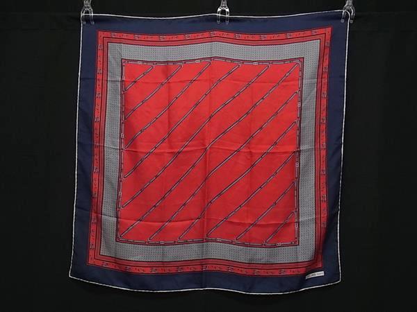 - CELINE セリーヌ 総柄 大判 スカーフ ストール ショール レディース ネイビー系×レッド系×アイボリー系 DJ1381