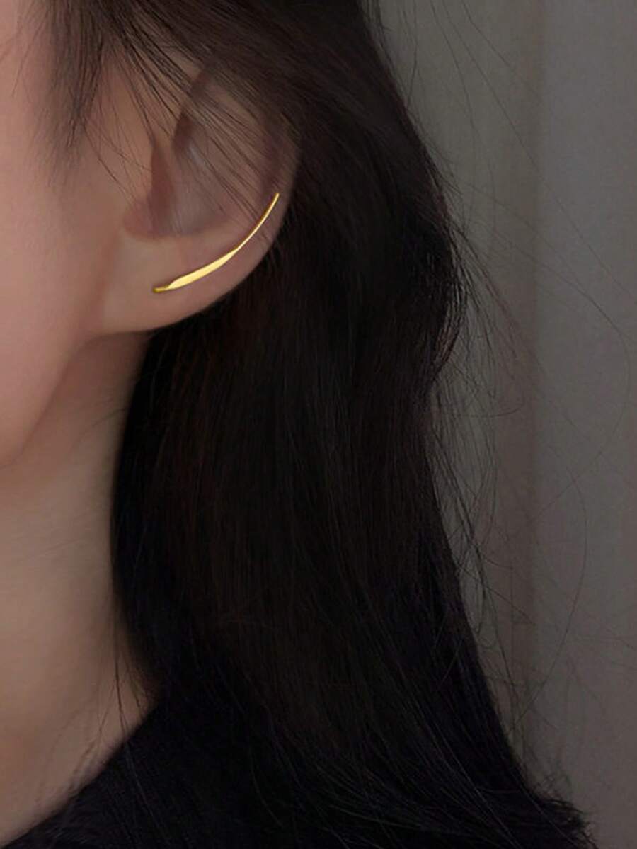 > ジュエリー レディース イヤーアクセサリー 極薄シンプルでクールなS925スターリングシルバーミニ字型ピアス1ペア、女性の高級&ニ