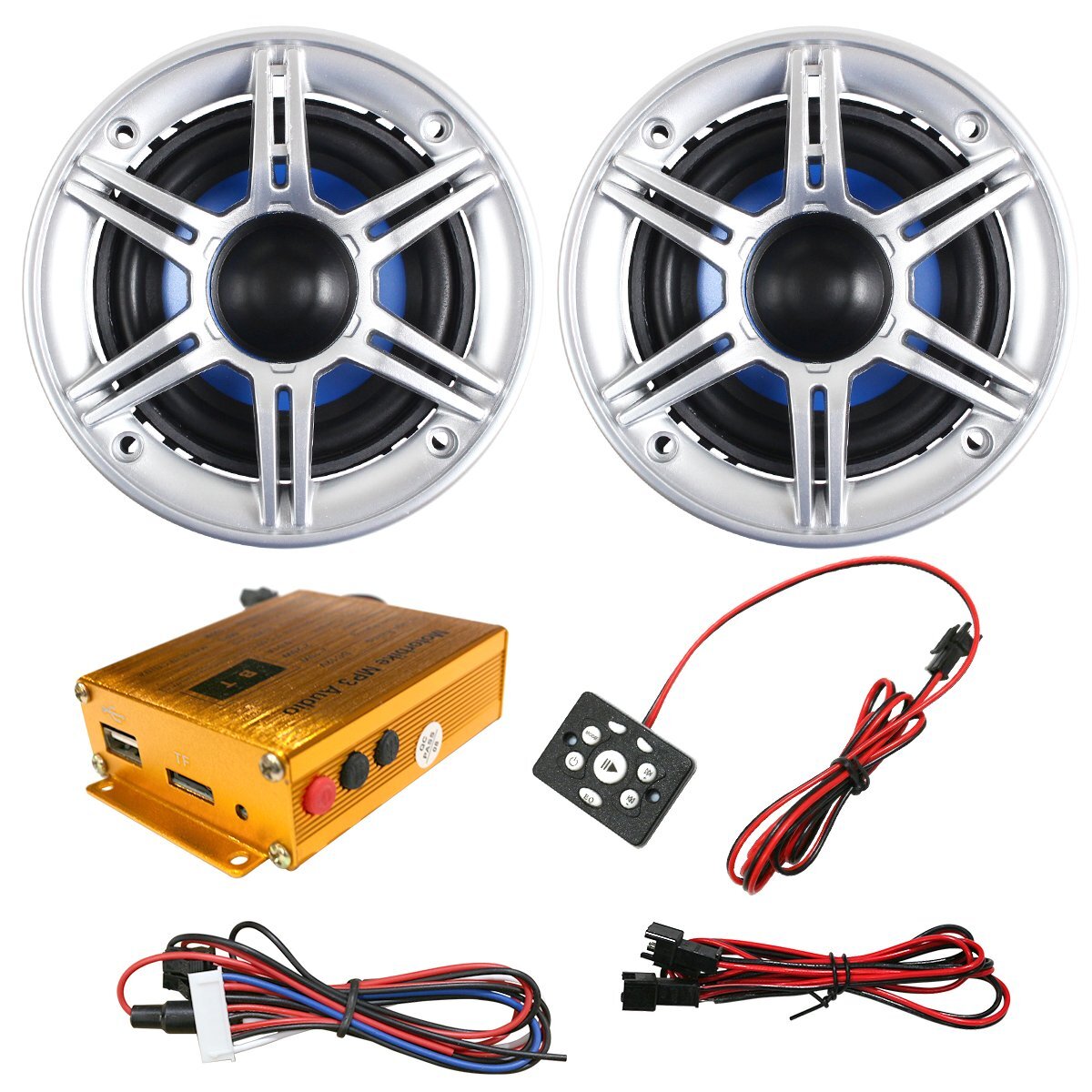 - バイク用 2個セット 12V スピーカー アンプ オーディオ リモコン 88dB/W ブルー 青 防水