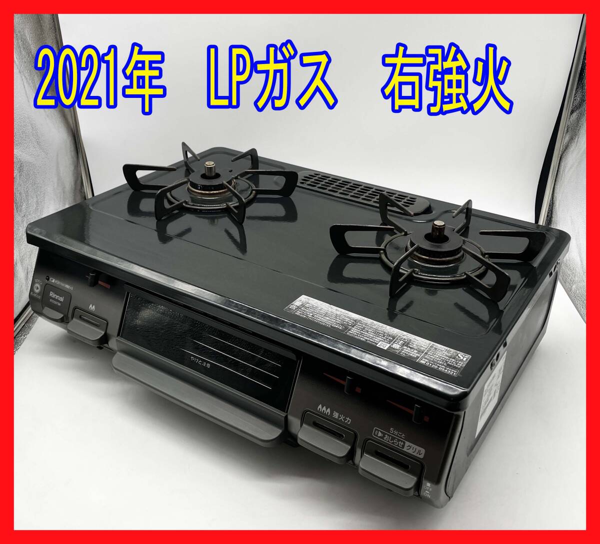 - 1109-19 ガスコンロ★リンナイ★RT67JH★2021年製★LPガス★右強火★水無し片面焼きル★動作確認済★ガステーブル