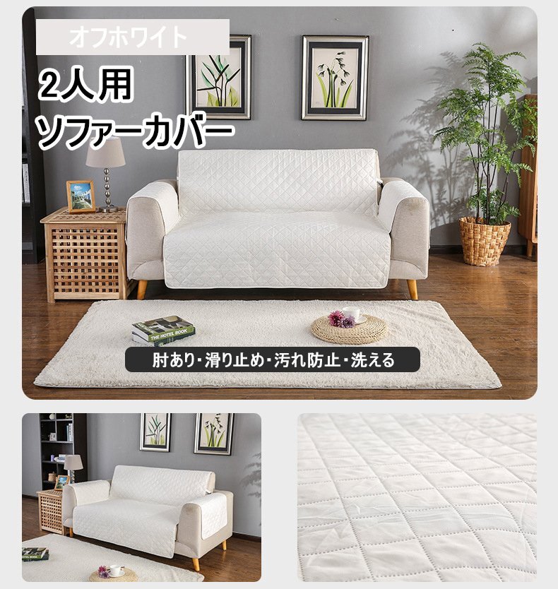 - ソファーカバー 2人掛け ソファーシーツ 肘付き 肘あり マルチカバー ペット用 犬 猫対策 爪とぎ防止 滑り止め 汚れ防止 オフホワイト