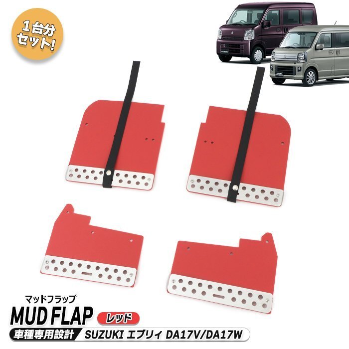 > スズキ エブリイ バン ワゴン DA17V DA17W 大型 マッド フラップ 1台分 セット レッド 新品 アルミプレート付き マッド ガード 泥除け