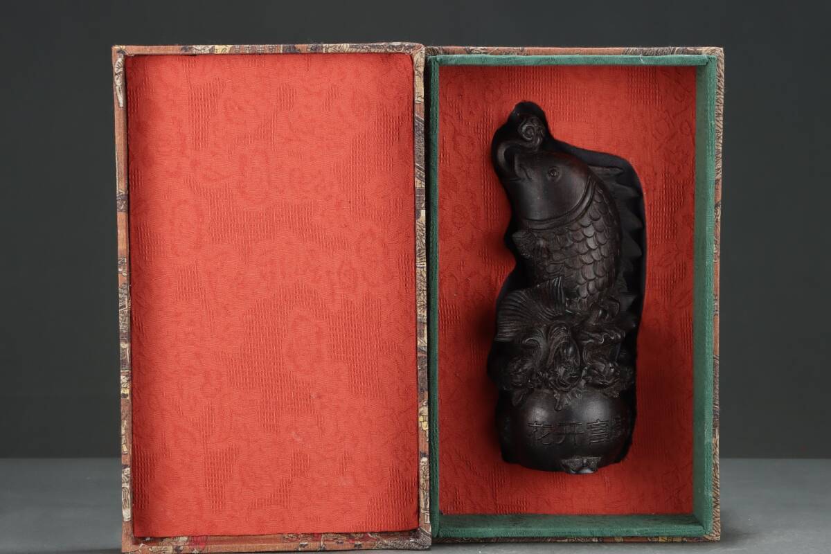 - 旧蔵 沈香木彫 魚吐蓮花 擺件 古擺件 古置物 中国古玩 骨董品 時代物 稀少唐物