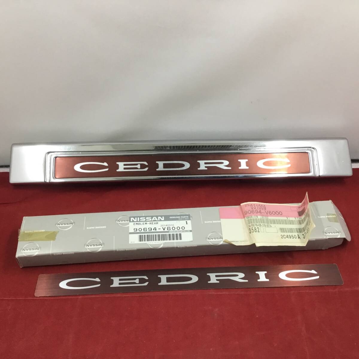 > ★☆当時物 NISSAN 日産 Y30 VY30 WY30 セドリック ワゴン バン トランクエンブレム パーツ リアガーニッシュ デッドストック おまけ付☆★