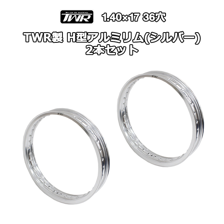 > (2本セット) アルミリム 1.40-17 36穴 TWR製 H型 (シルバー) スーパーカブ等に ホイールリム ワイドホイール