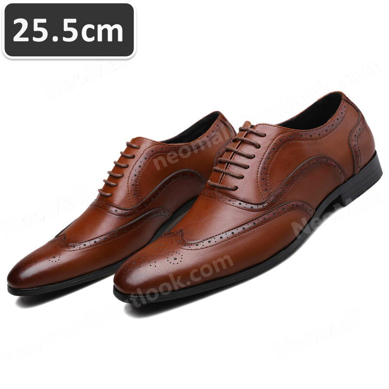 > お洒落な メンズ ビジネス レザー シューズ ダークブラウン サイズ 25.5cm 革靴 靴 カジュアル 屈曲性 通勤 軽量 インポート品【n016】