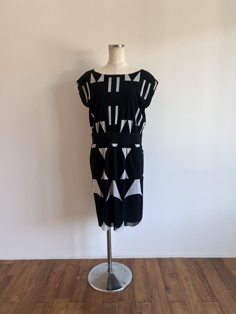 > ヴィヴィアンタム/VIVIENNE TAM/ワンピース/ノースリーブ/膝丈/1/SM/裏地付き/ナイロン/パーティー/ブラック×グレーホワイト/良品美品