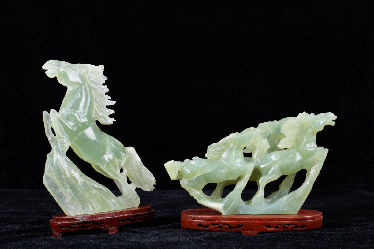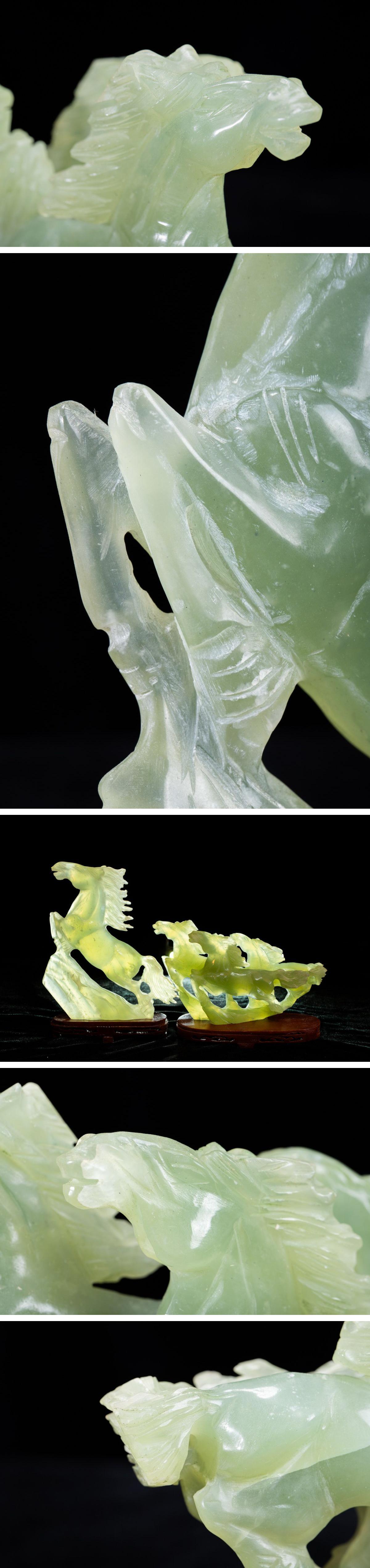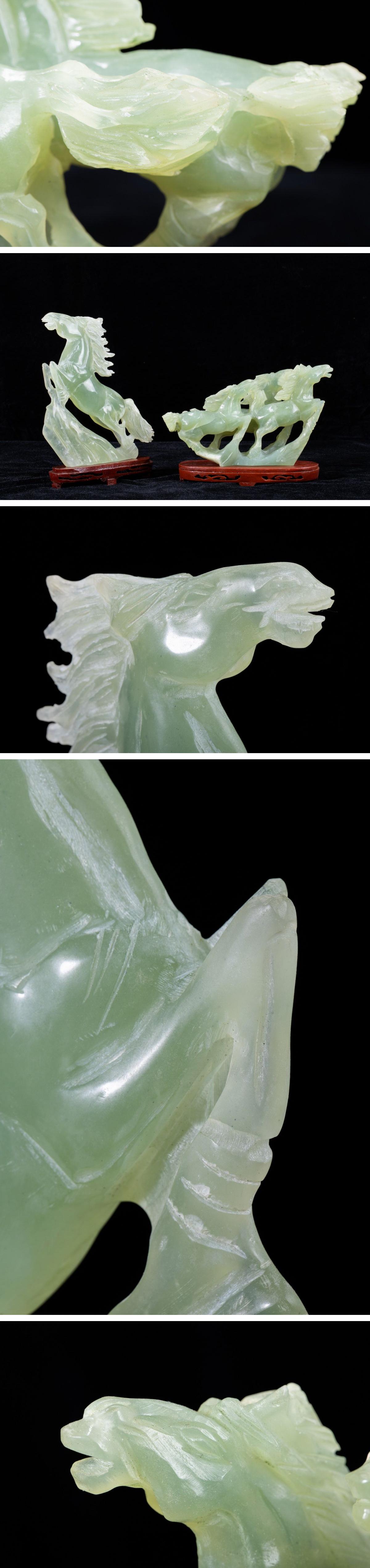 - 【珍品堂】1円から N17-V4 天然石 玉石 馬 細密細工 極上 2体 台付 縁起物 鑑賞品 コレクション 開運 時代物 工芸品 骨董品 古美術 希少