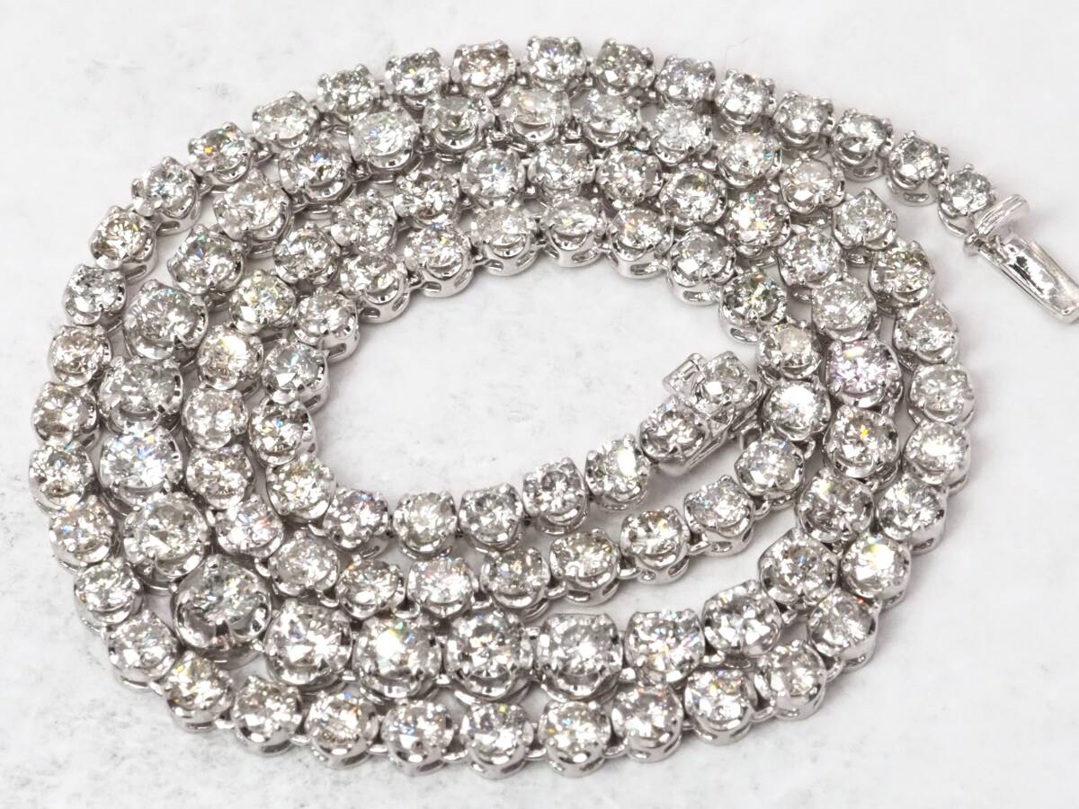 > 【8577T】鑑別書付 K14WG 天然ダイヤモンド 10.00ct/16.3g フルエタニティ ネックレス