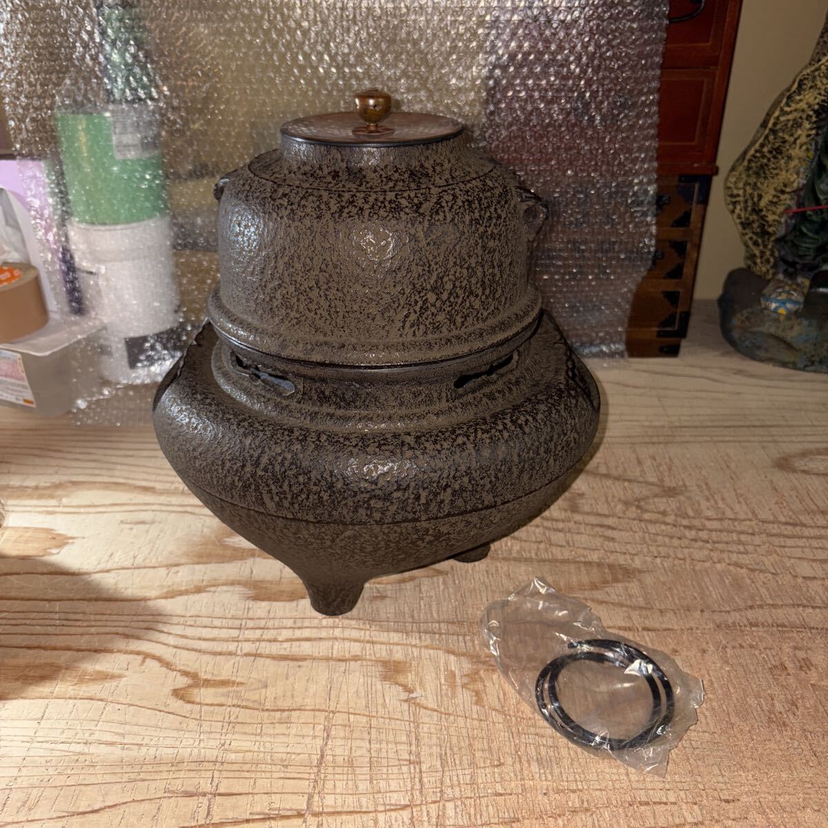 - 茶道具 茶釜 鉄釜 風炉釜 荒肌朝鮮 未使用