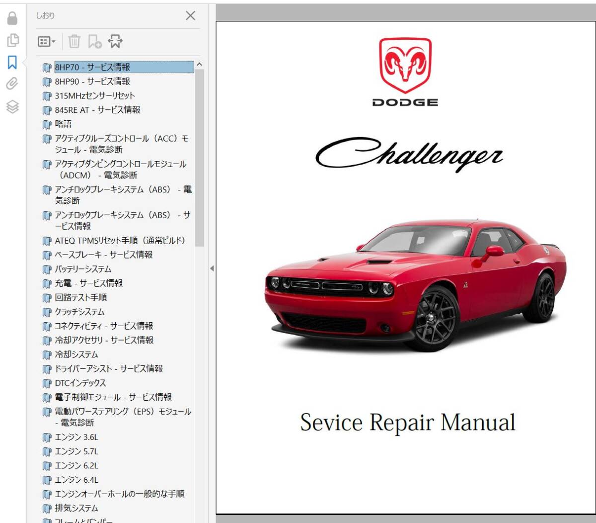 - ダッヂ チャレンジャー 2015-2016 ワークショップマニュアル Ver2 整備書 ボディー修理 修理書 配線図 ダッジチャレンジャー