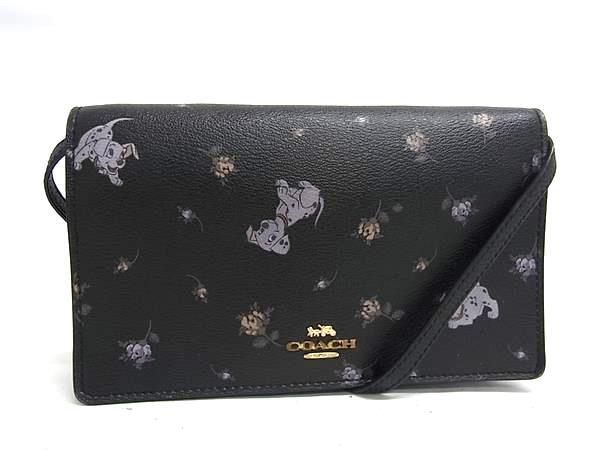 > 1円 ■美品■ COACH コーチ 91187 ディズニーコラボ 101匹わんちゃん PVC フラワー 2WAY ショルダーバッグ クラッチ ブラック系 FP8688
