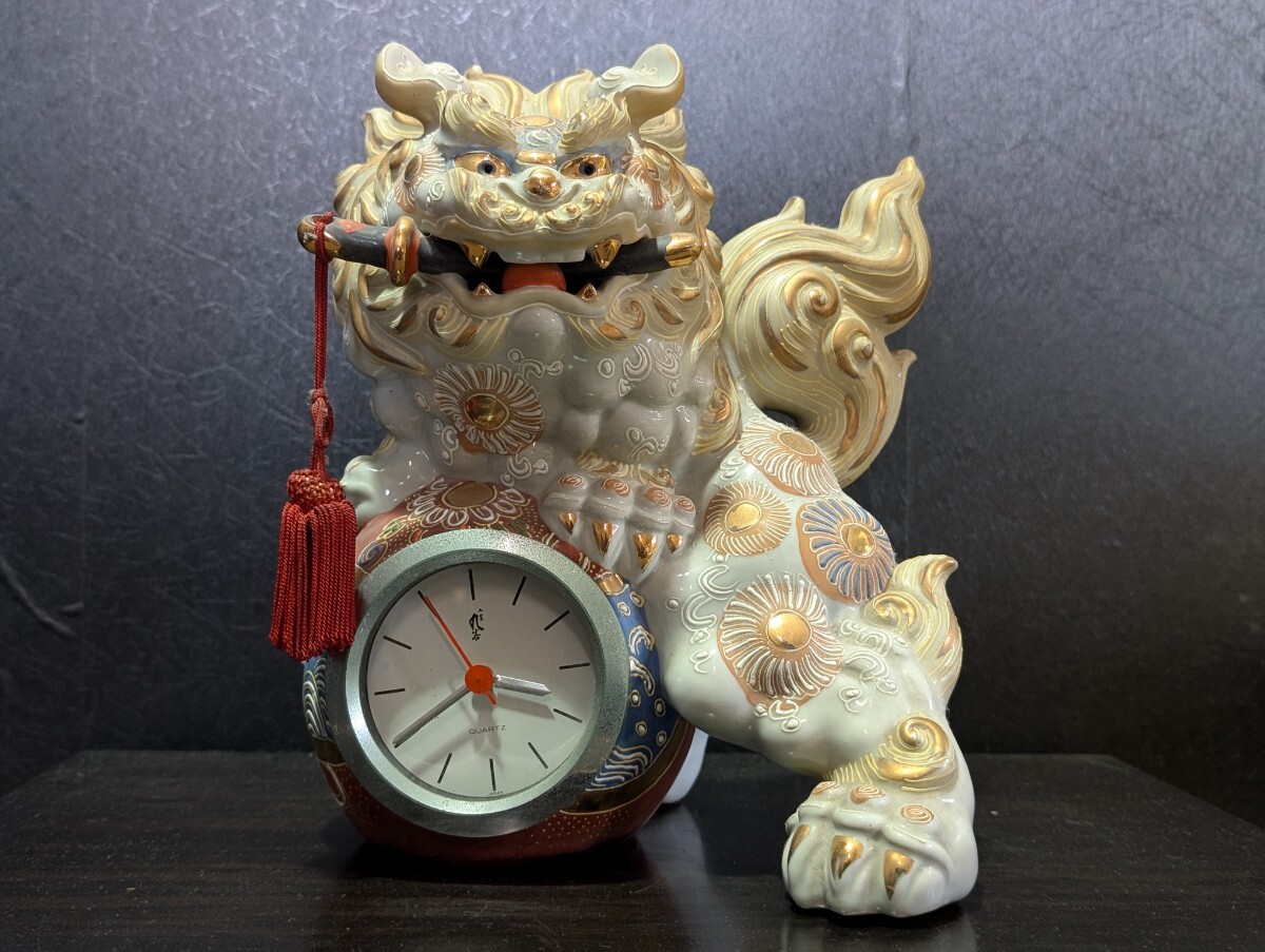 - 九谷焼 唐獅子 玉乗り獅子 剣獅子 魔除け 縁起物 高さ31cm