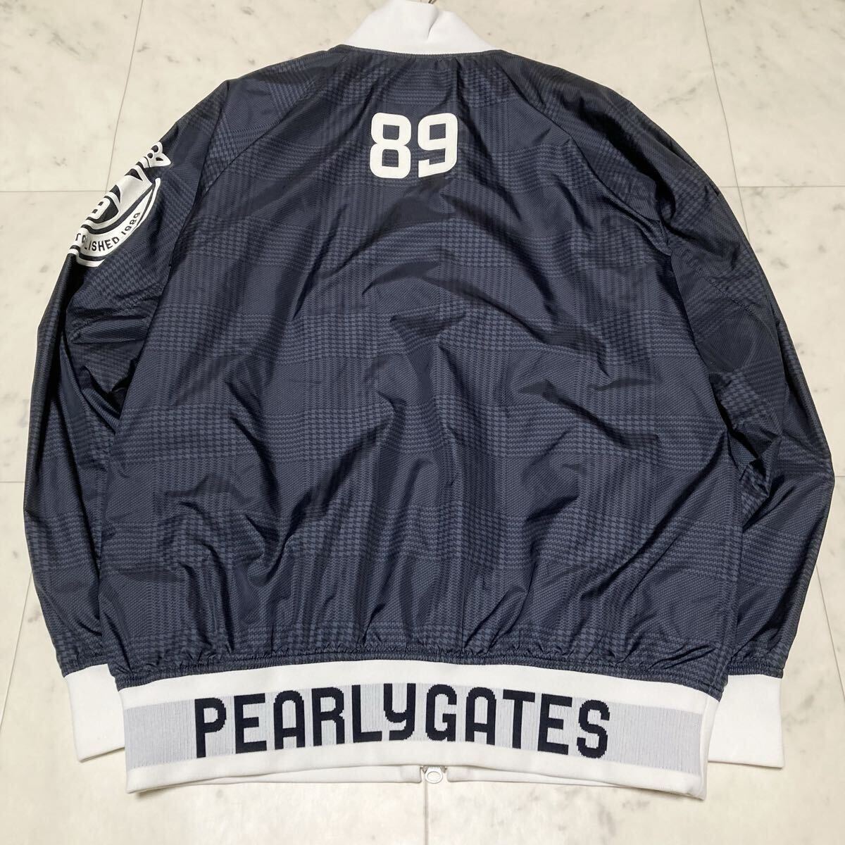 > ●パーリーゲイツ 蓄熱 ジャケット PEARLY GATES ブルゾン チェック ロゴ 総柄 エンブレムダブルジップ ネイビー ゴルフ メンズ