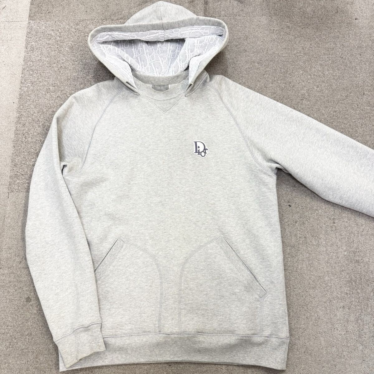 > 335『極美品・現行タグ』 DIOR ディオール メンズ オブリーク ロゴ 刺繍 プルオーバー パーカー スウェット フーディ グレー Lサイズ