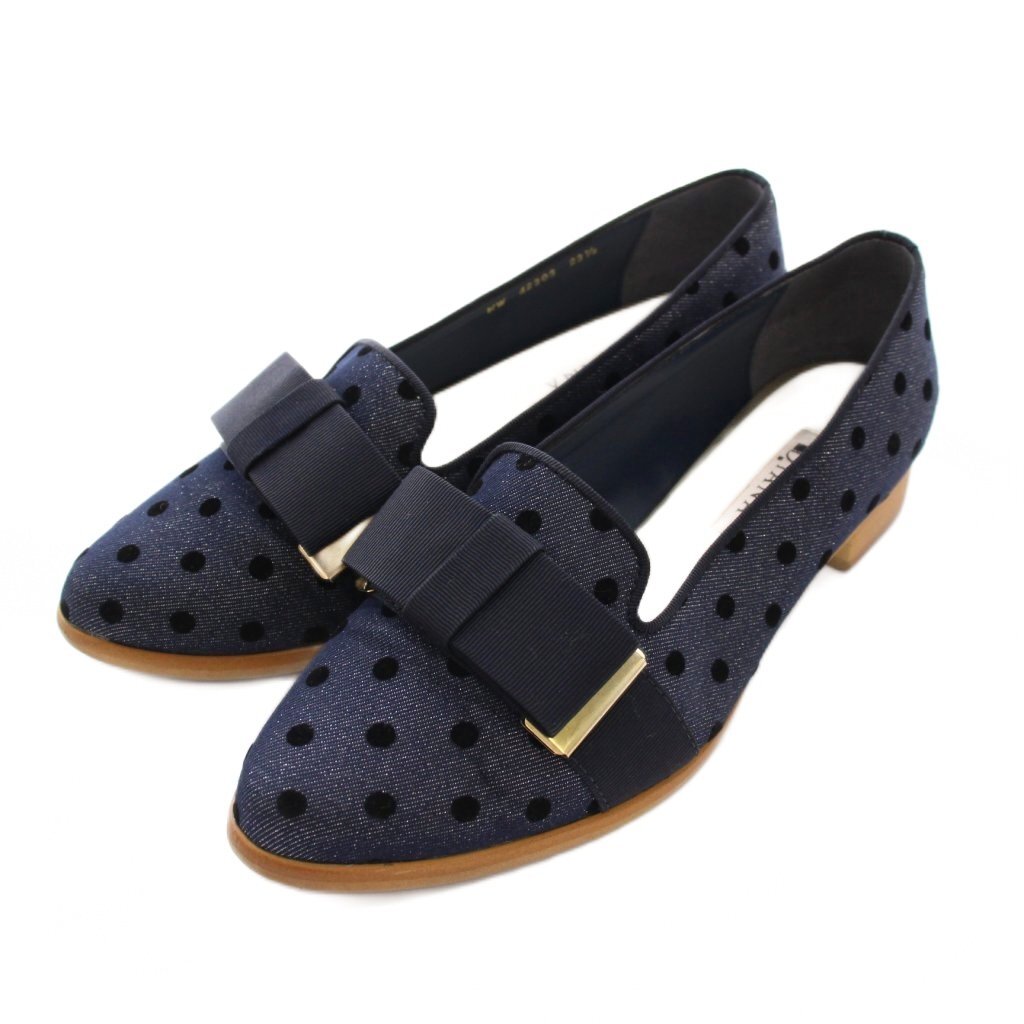 > ダイアナ DIANA パンプス デニム生地 リボン付き ドット柄 フラットシューズ 23.5cm 紺 ネイビー /YM レディース