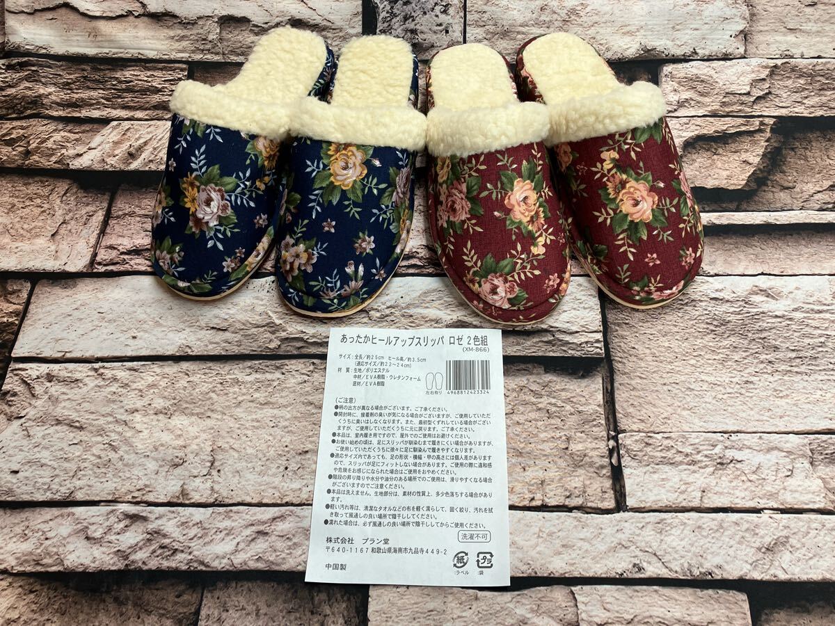 - 訳あり品限定特価!メーカー処分品!お洒落なレトロ感!あったかボア付きヒールアップスリッパロゼ(画像から)1足1,089円が