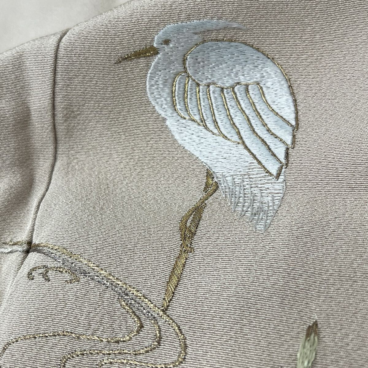 - 付下げ 裄66.5 トールサイズ 刺繍の鷺 シンプル 上品 着物 正絹 W-7718