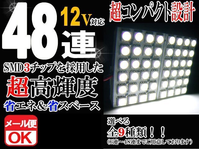 - 48連 SMD 3チップ LEDライト 12V用 白 ホワイト T10×29mm~41mm BA9Sタイプ ウェッジ球タイプ ルームライト ルームランプ