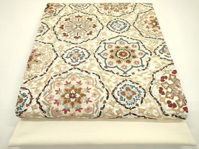 - 平和屋着物▼中国三大刺繍 相良刺繍 総刺繍 太鼓柄袋帯 正倉院花文 金糸 正絹 逸品 未使用 DAAZ6043fe