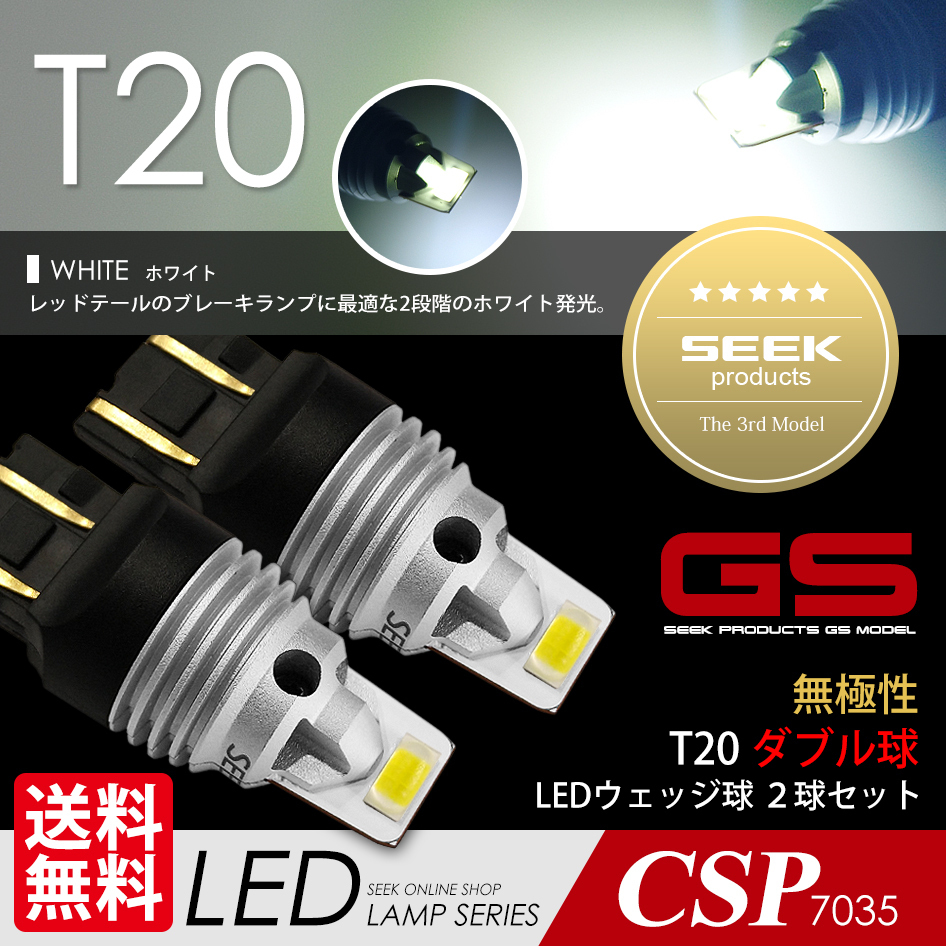 > T20 LED SEEK GSシリーズ ホワイト / 白 ブレーキランプ / テール ダブル 1500lm 無極性 ウェッジ球 点灯確認後出荷 ネコポス 送料無料