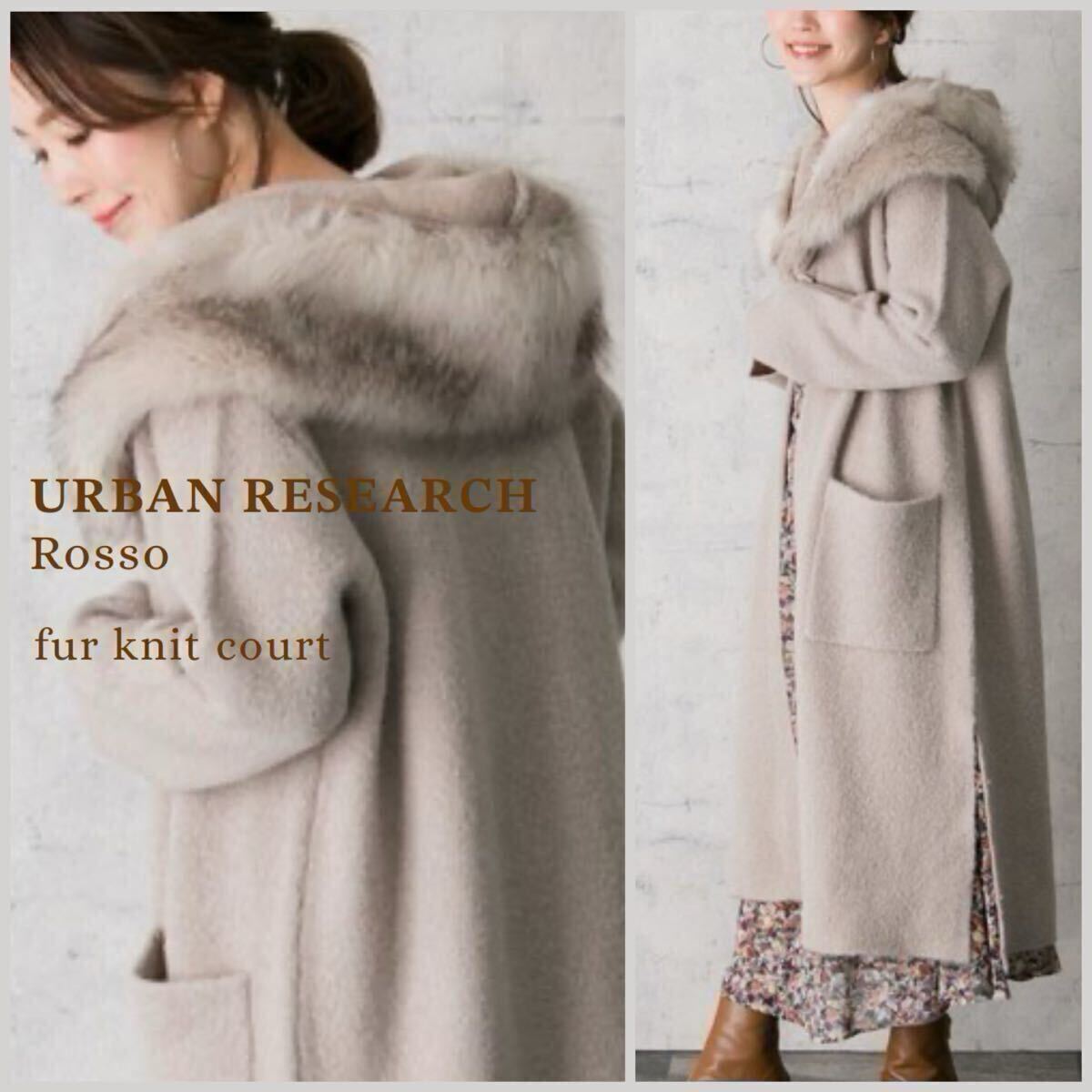 > 極美品 ファーが目を惹くニットコート ROSSO ファー付き ニットコート ロングコート アーバンリサーチ URBAN RESEARCH
