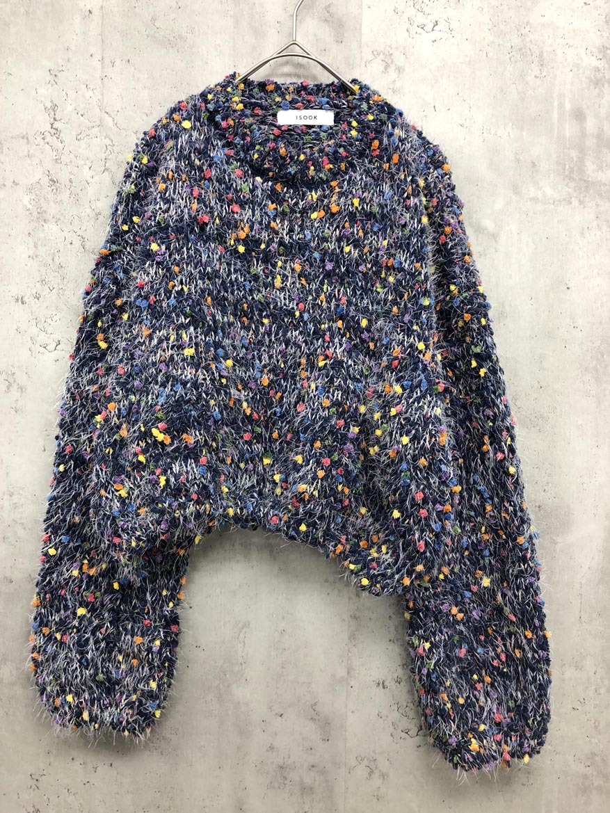 > 美品 ISOOK アイスー クロップ丈 ミックスカラー シャギー ニット セーター sizeF/マルチカラー ◆■ ☆ fkb4 レディース