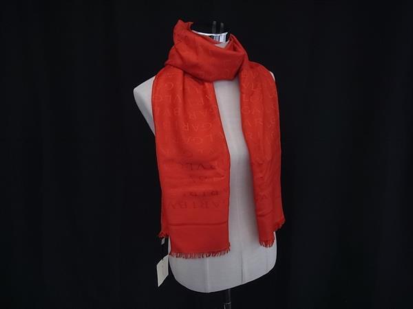 - 1円 ■極美品■ BVLGARI ブルガリ ロゴマニア シルク60%×ウール40% フリンジ 大判 ストール ショール 防寒具 オレンジ系 FH8702