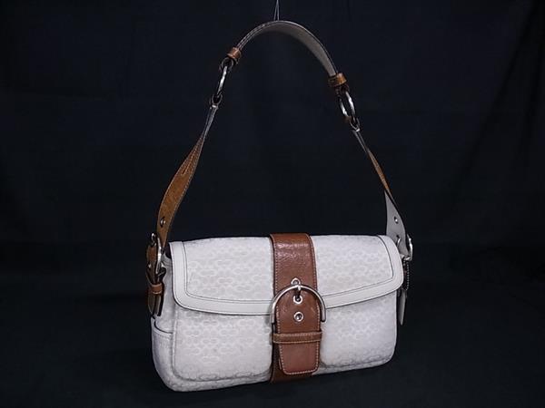 > 1円 COACH コーチ 1463 ミニシグネチャー キャンバス×レザー ハンドバッグ ショルダーバッグ 肩掛け アイボリー系×ブラウン系 GD0051