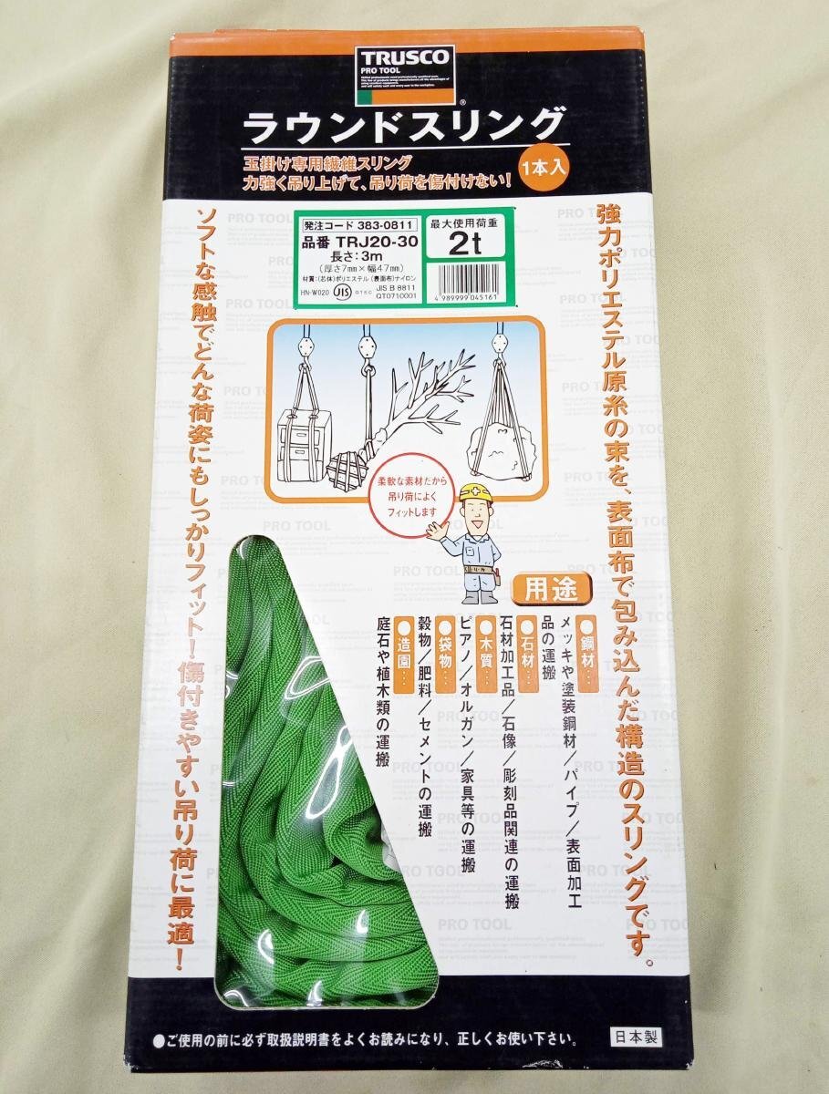> [未使用品] TRUSCO トラスコ中山 ラウンドスリング TRJ20-30 長さ3M 最大耐荷重2t グリーン 吊り上げ 吊り荷 (1) [二本松店]