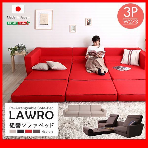 - ソファ★組み換え自由なソファベッド 3人掛け/カウチソファ ソファベッド ローベッド/ポケットコイル 日本製/ベージュ 黒 茶 赤/特価/zz