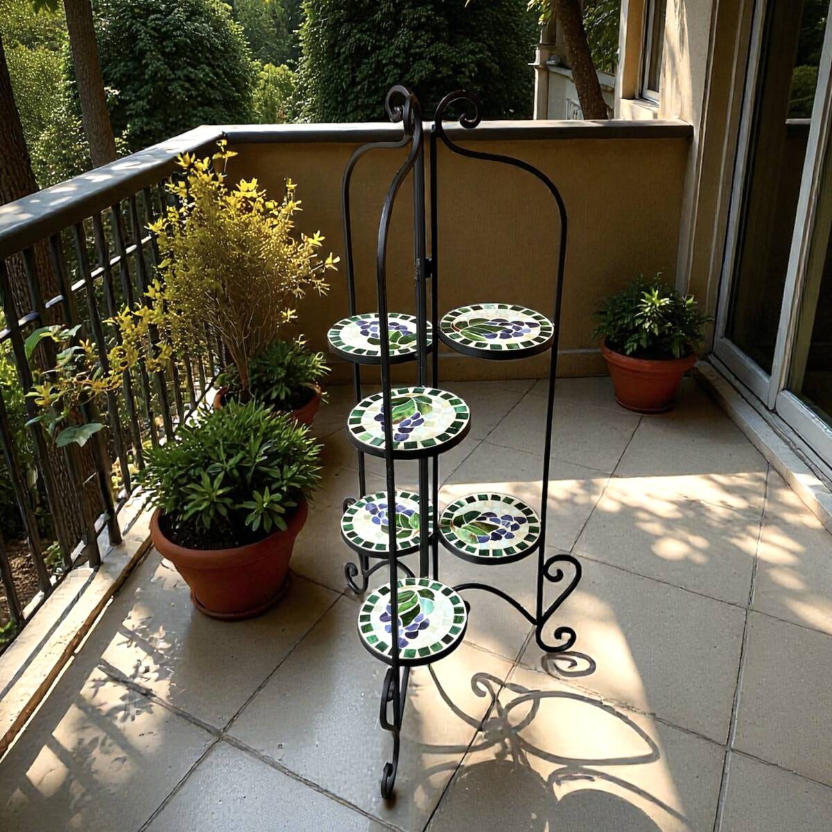 - アイアン×モザイク 5段フラワースタンド 花台/室内使用 美品/折りたたみ可 高さ110cm 〜札幌白石区引き取り可〜