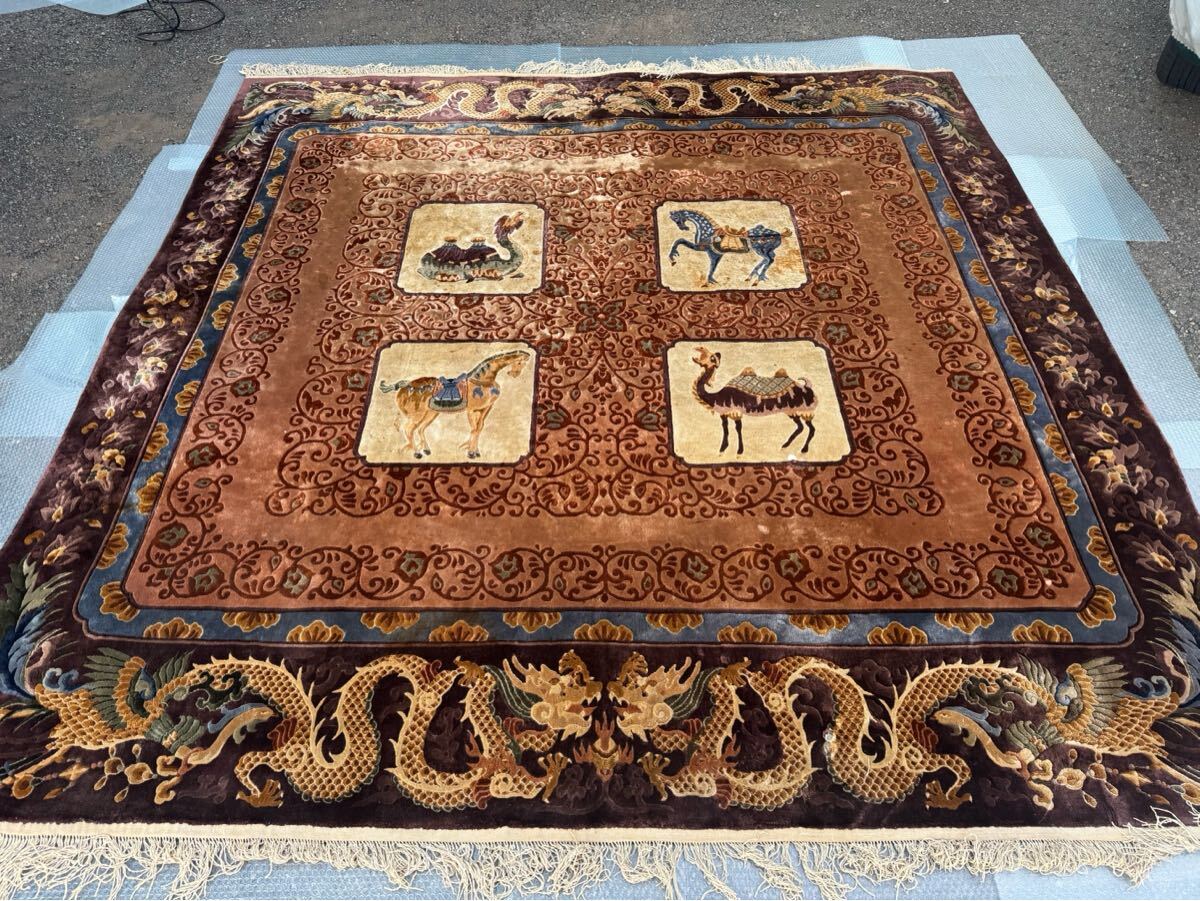- 特大 上海絨毯 シルク100% カーペット 絨毯 段通 敷物 特大判 ラグ 段通