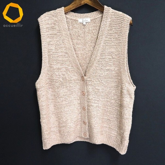 > #w レリアン Leilian ニット ベスト ジレ 13+ ピンク系 シルク 絹 100% 13号 大きいサイズ 日本製 タグ付き 美品 [972609] k01