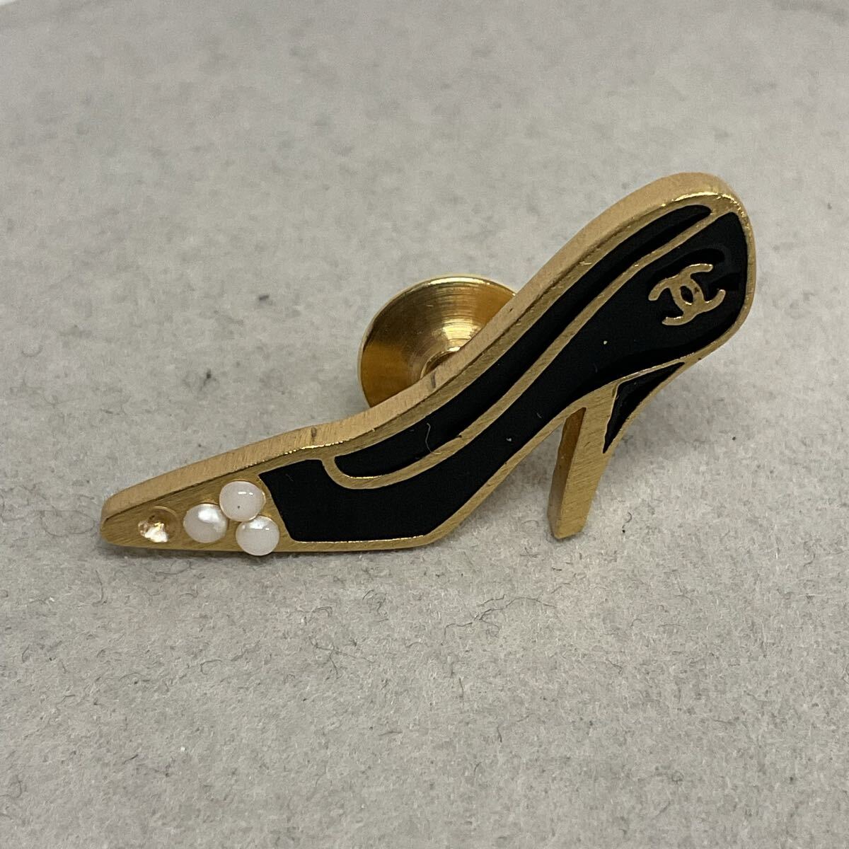 - 営HM180-60◆ CHANEL シャネル 02A ハイヒール ピンヒールモチーフ ココマーク ゴールド×ブラック ピンブローチ ピンバッチ